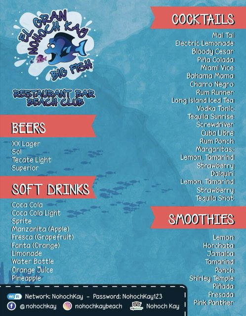 - Full open bar : Bloody Mary’s, Rum Punch, Daiquiris, Pina Coladas, Margaritas, Mai Tai’s, Cuba Libre, Tequila, ICE COLD BEER and more! Bottled Water, Sodas, Virgin Drinks and fruit juices are also available Unlimited soft drinks, water, and local beverages.